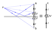 The radio waves from an antenna element that reflect off a ground plane appear to come from a mirror image of the antenna located on the other side of the ground plane. In a monopole antenna, the radiation pattern of the monopole plus the virtual "